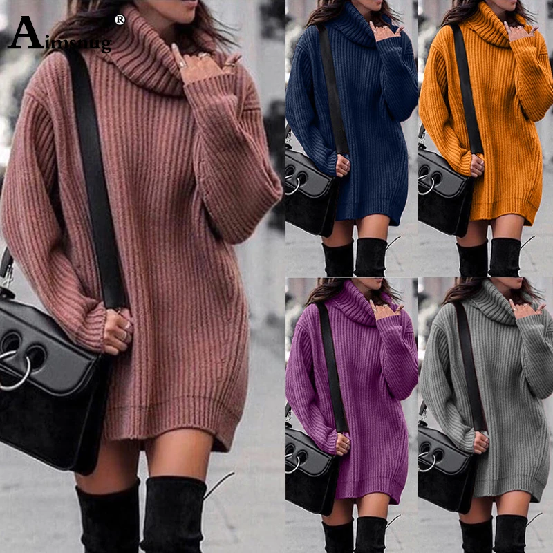 Aimsnug Plus Size 4XL 5XL Autumn Winter New High Collar Solid Office Lady 2019 Loose Long section Women Wool Pullover Sweater