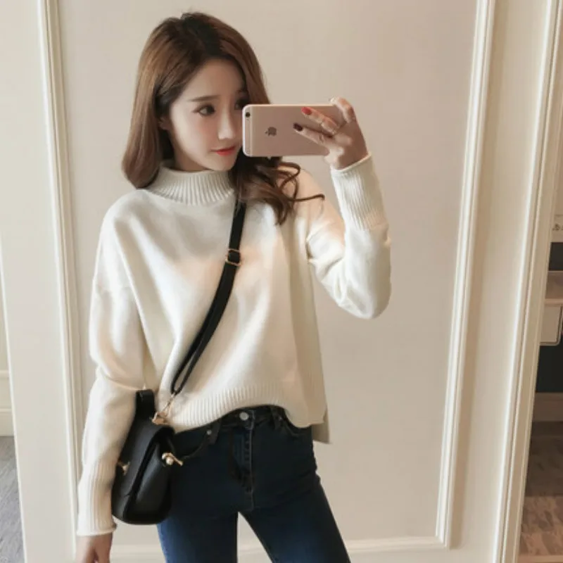 Autumn Winter Women Pullovers Sweater Knitted Elasticity Casual Jumper Fashion Waist split Slim Turtleneck Warm Female Sweaters