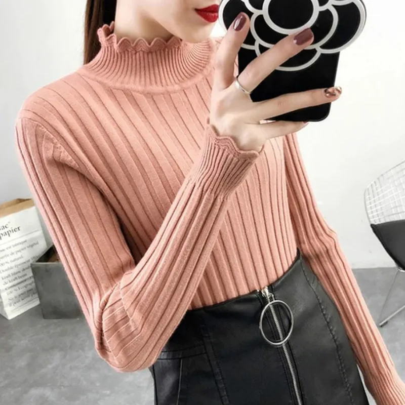 Flounced Turtleneck Warm Women Sweater Autumn Winter clothes Knitted Femme Pull High Elasticity Soft Female Pullovers Sweater