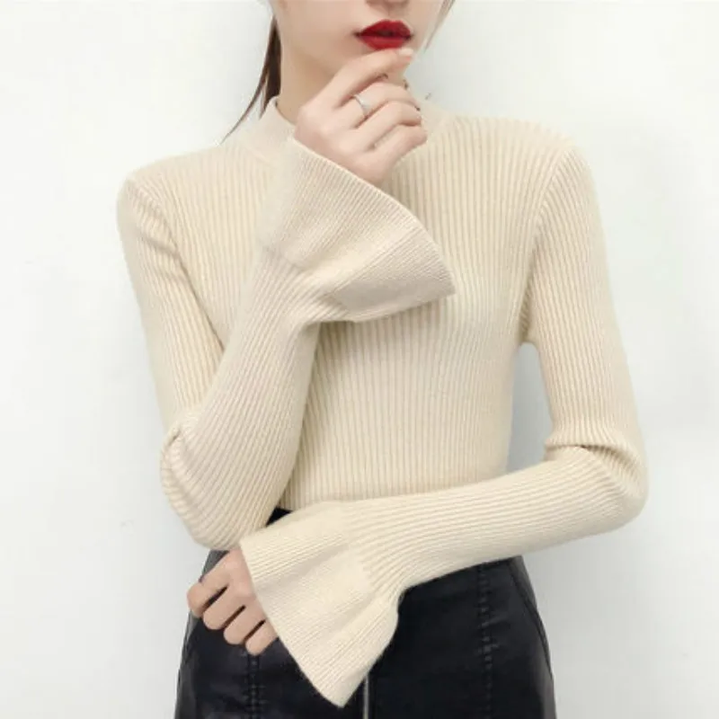 turtleneck Sweaters Women Autumn Winter Fashion Basic Pullover Female Jumpers Trumpet sleeves Pull Femme Casual Knitted korean