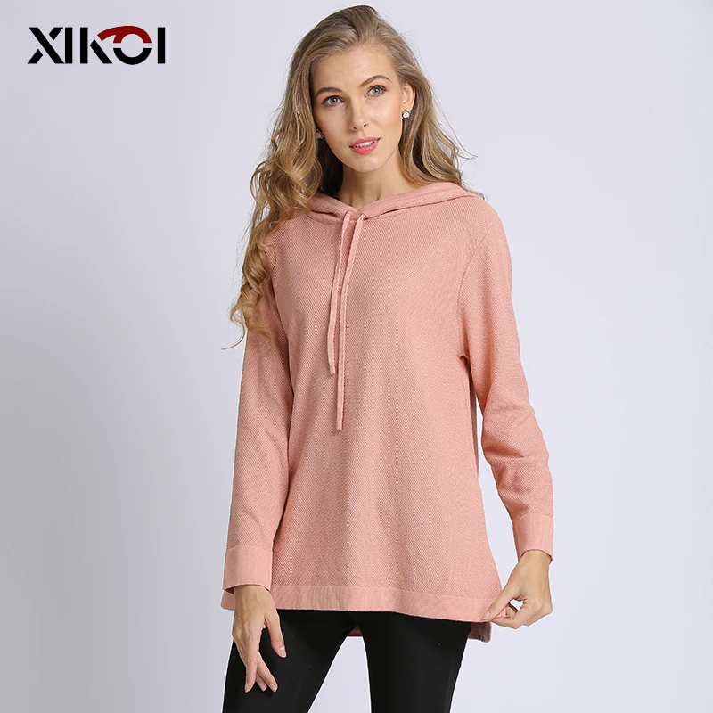XIKOI Women Knitted Pullovers Hooded O-Neck Fleece Lady Jumper Casual Women s Sportswear 2018 Autumn Solid Sportswear